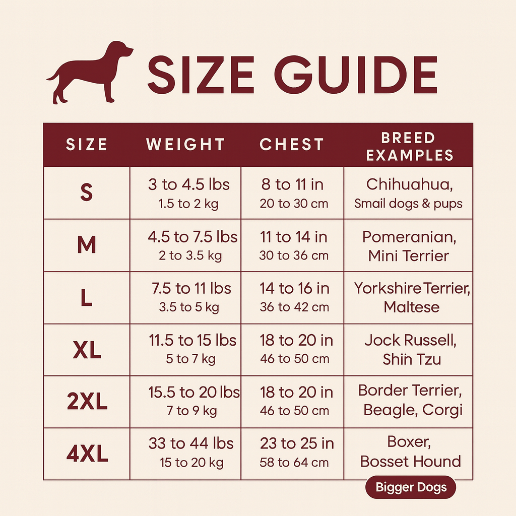 Use our size chart on the product page to find the perfect fit. Measure your dog’s chest and neck circumference, and select the closest match. If your dog is between sizes, we recommend sizing up for extra comfort.