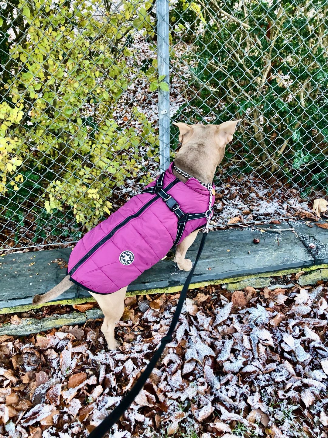 Step 4 — Adventure, Rain or Shine: Water-resistant, insulated, and stylish — this jacket keeps your dog protected on misty mornings, chilly walks, and snowy weekends.